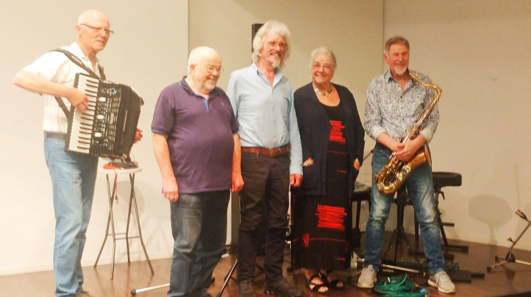 Für den authentischen Sound der Wirtschaftswunderzeit sorgte das Duo Combo2Go. Mit Akkordeon, Gitarre und Saxophon ließen sie die großen Hits der Epoche wieder aufleben. Von der Surfmusik der Spotniks über Freddy Quinns schmachtenden „Heimweh“-Schlager bis zu Chuck Berrys revolutionärem Rock’n’Roll spannte sich der musikalische Bogen. Besonders die Schunkelklassiker „Marina“ und „Bella Ciao“ brachten das Publikum in Stimmung – manche Füße konnten nicht stillhalten, wie Dr. Jäckel bereits in ihrer Begrüßung prophezeit hatte.
